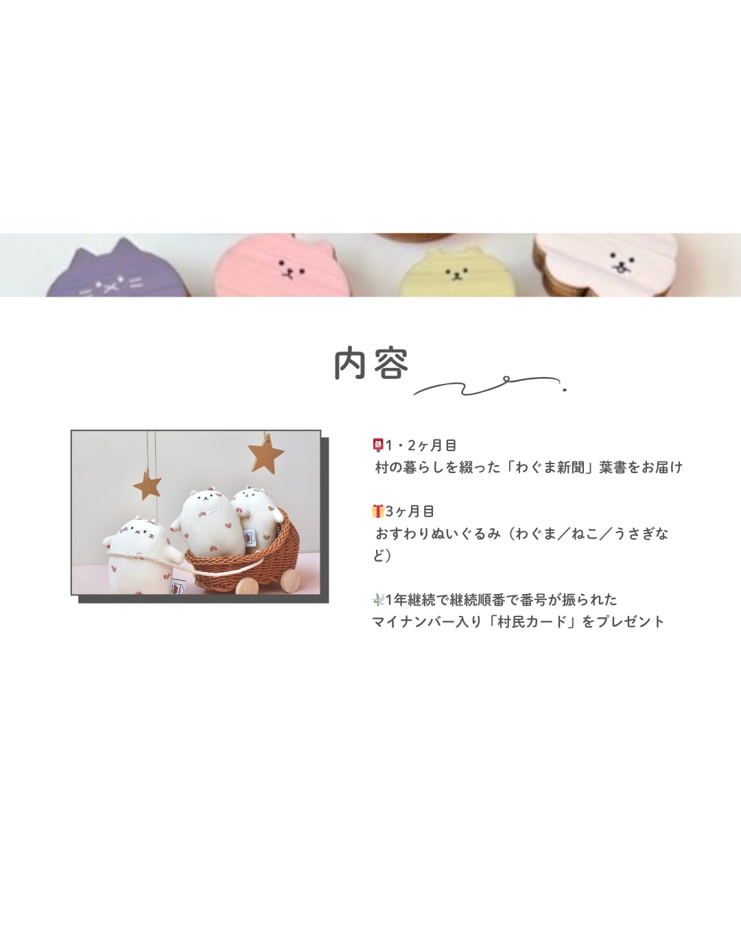 ・3か月ごとに「村の子たち(おすわりぬいぐるみ)」をお届け
