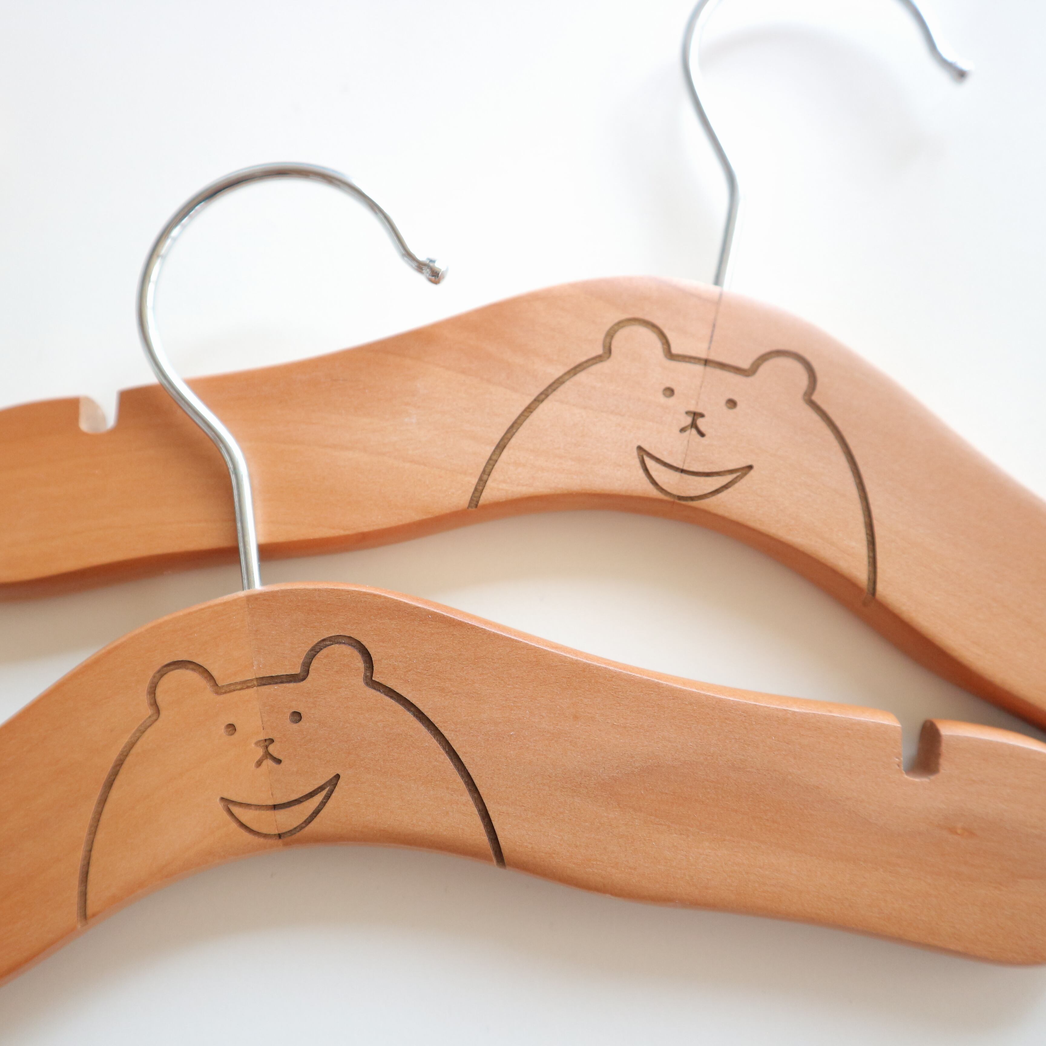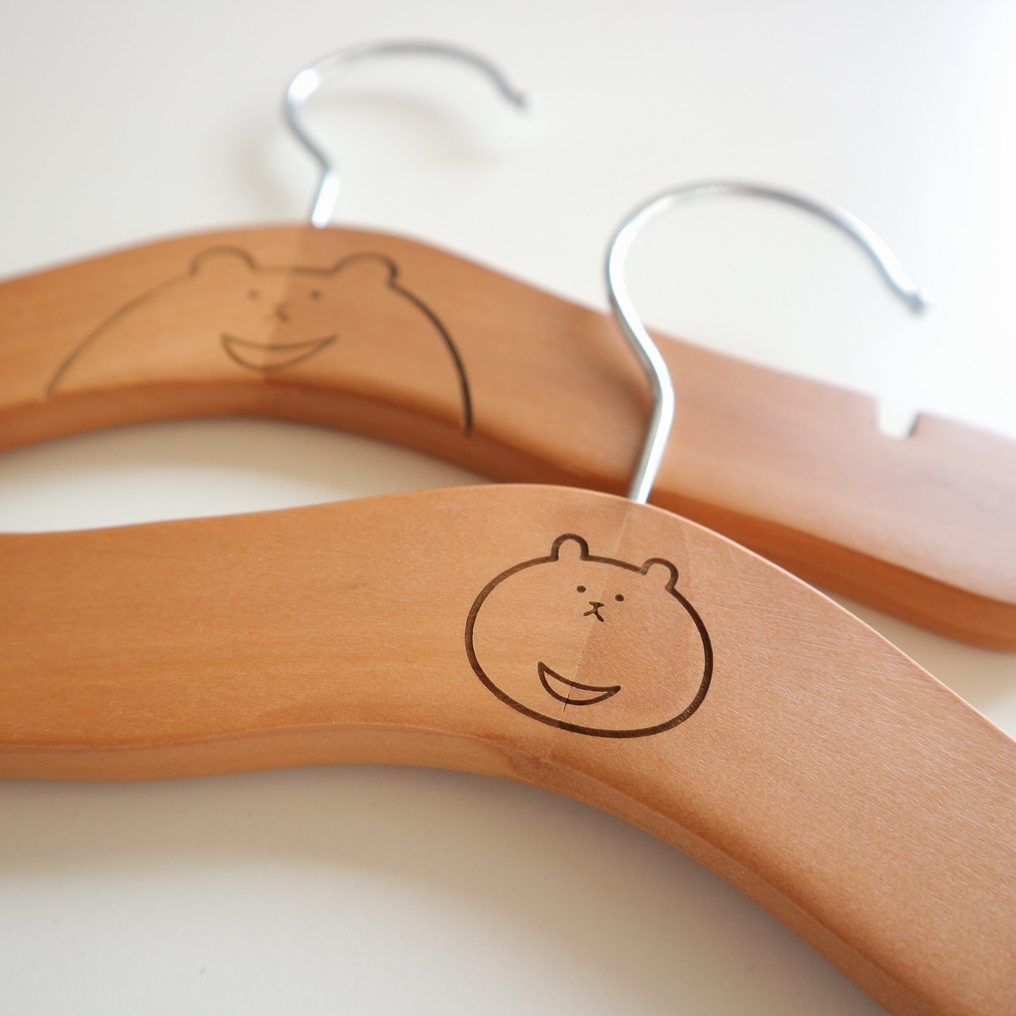 ツミキポッシュの人気者、つみきのわぐまのイラストが入った木製のハンガーです。