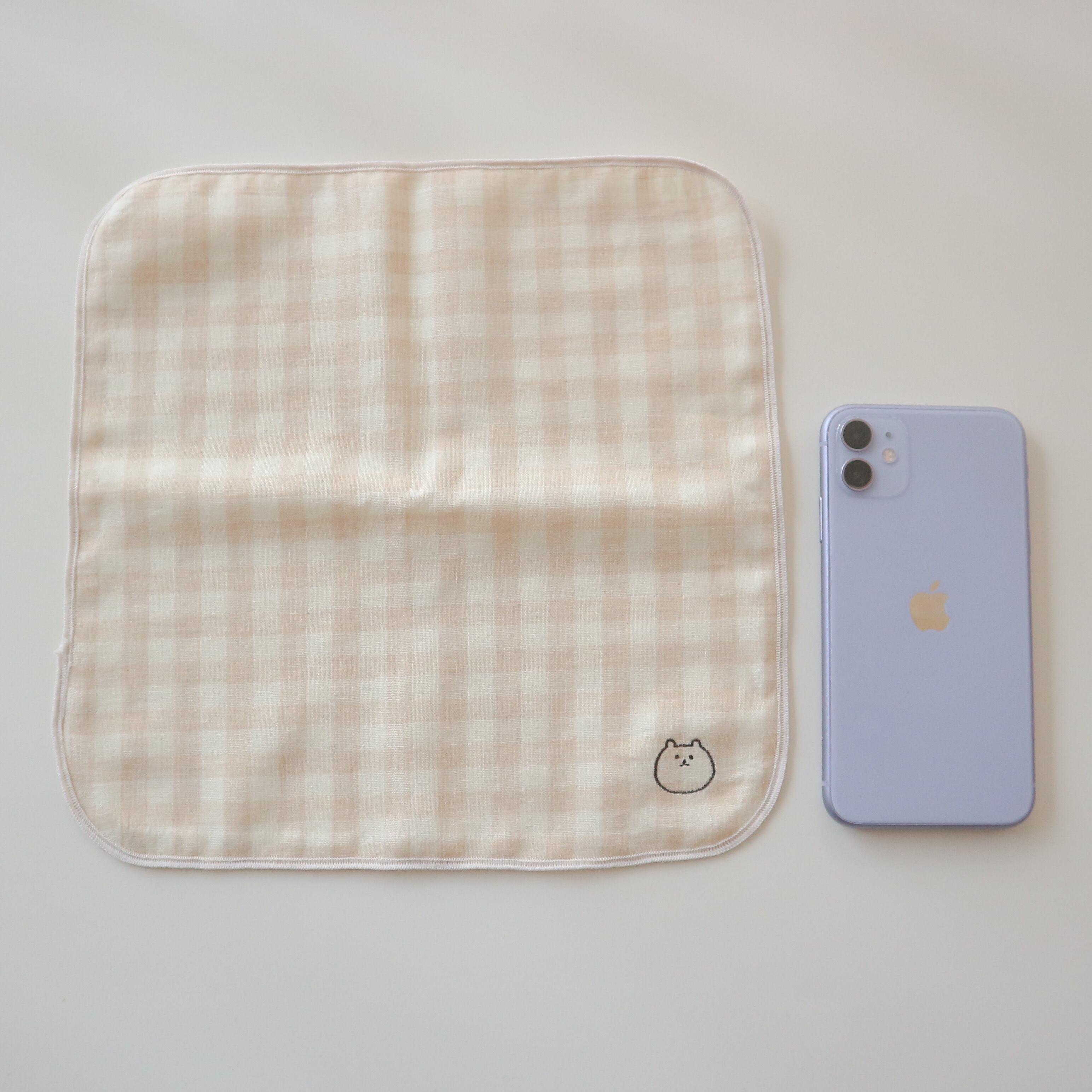 つみきのくまさんがワンポイントになったガーゼハンカチです。