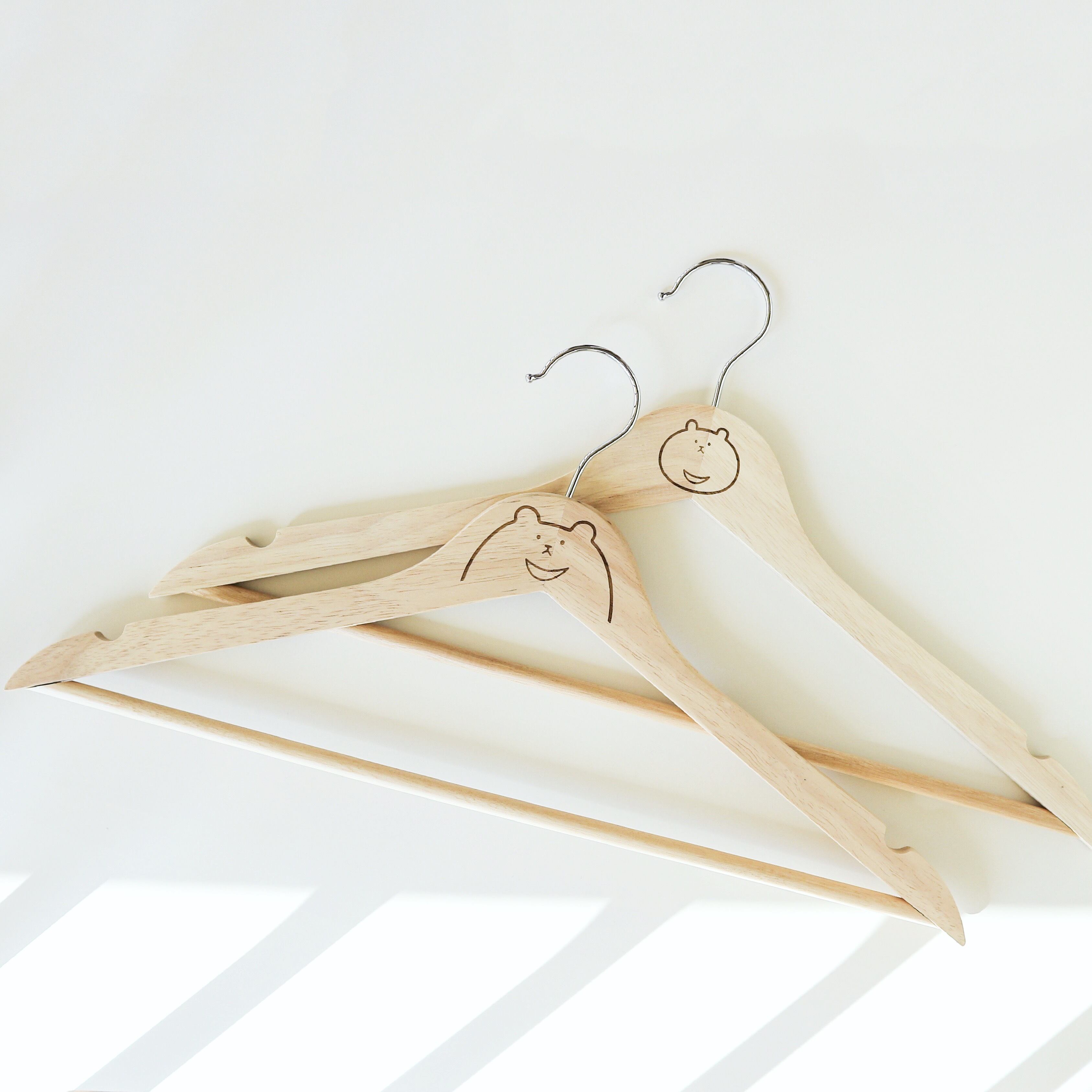ツミキポッシュの人気者、つみきのわぐまのイラストが入った木製のハンガーです。