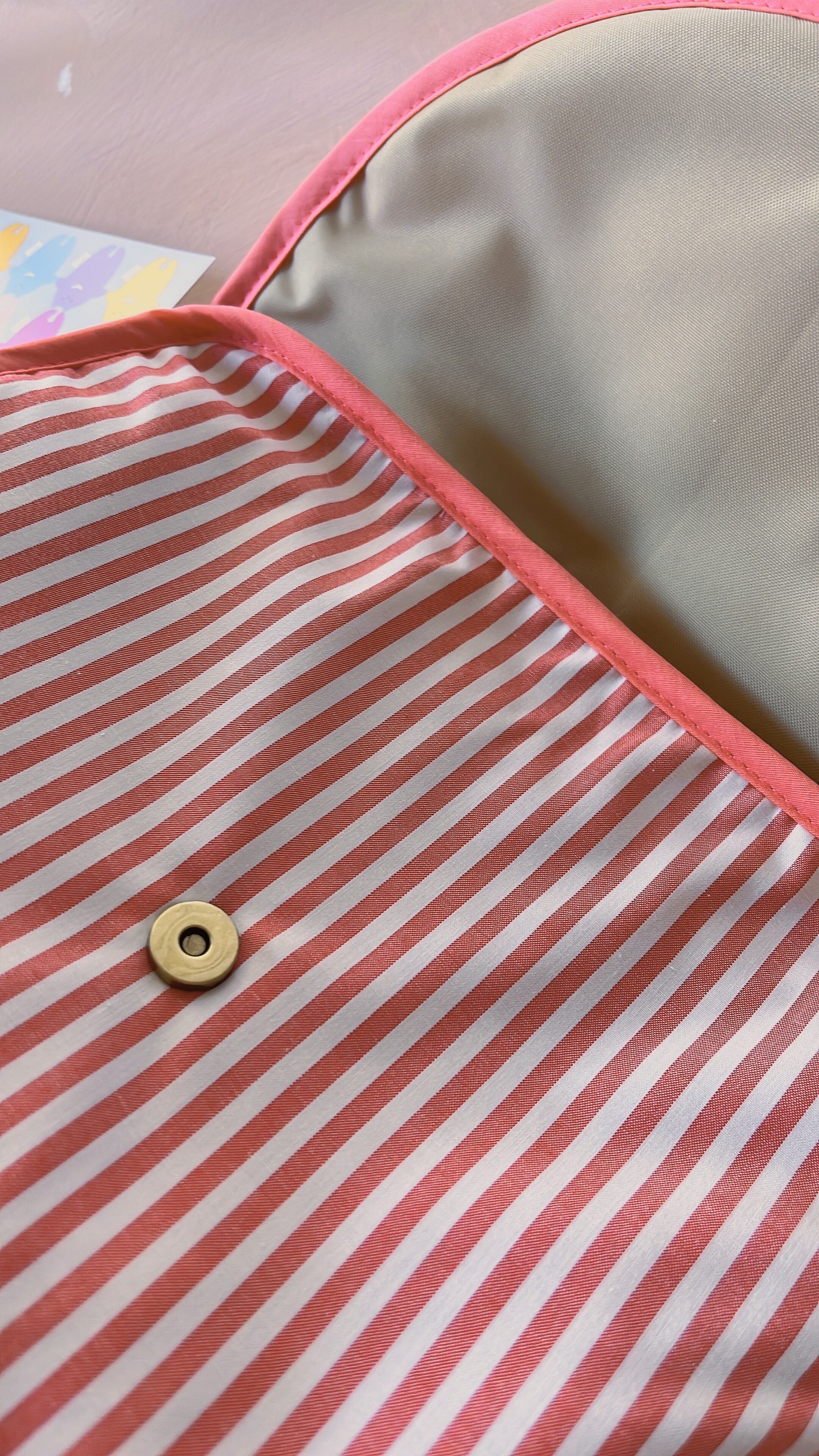 洗えるよう母子手帳の中に入っている定番の台紙を入れず、あえてふにゃふにゃとした柔らかい状態にしました。